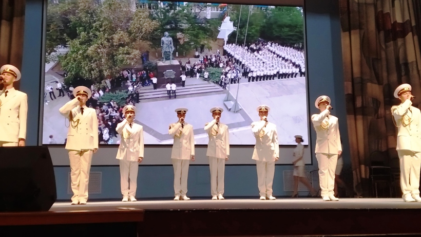 Затем участники и почетные гости совершили экскурсию по музею, где встретили Екатерину Вторую, рассказавшую про победы великого флота Российского. Почтил своим присутствием конкурс и сам император Пётр Алексеевич. Замечательные концертные номера подготовил для церемонии открытия колледж “Звёздный”.