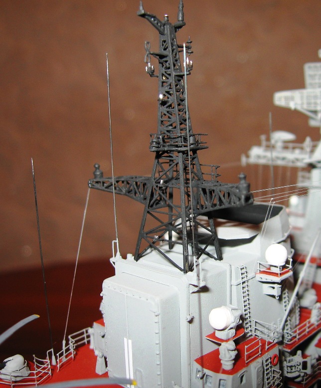 Сложность исполнения доработок во многом определялась мелким масштабом модели. Особенно трудоёмким стало изготовление 5 объемных антенн, расположенных между фок и грот-мачтами. Их конструкция в масштабе 1:350 оказалась настолько «воздушной», что легко сминалась от малейшего прикосновения. В итоге пришлось изготовить на специальном кондукторе 16 антенн, из которых лишь 5 пошли в дело и были в конце концов установлены на модели. Но овчинка стоила выделки. Благодаря этим и многим другим усилиям, модель "Отличного" обрела большую копийность, и теперь её внешний вид не уступает сделанным "до последнего винтика" моделям-миниатюрам из класса С-4. Вместе с тем, занимаясь доработками, автор старался слишком не увлечься и не переступить грань, за которой модель утратила бы признаки своего спортивного класса.