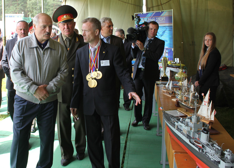 Во время посещения Минского аэроклуба ДОСААФ, празднующего 80-летие со дня образования, Президенту Республики Беларусь Александру Лукашенко были продемонстрированы различные направления деятельности оборонного общества. Глава государства выслушал также краткий доклад Дмитрия Калмыкова, главного тренера национальных и сборных команд по техническим, авиационным и военно-прикладным видам спорта Республики Беларусь, о достижениях спортсменов ДОСААФ на международной арене. Глава нашего государства был приятно удивлен, узнав о значительном количестве призовых медалей, которые досаафовцы ежегодно завоевывают на самых ответственных стартах за рубежом.