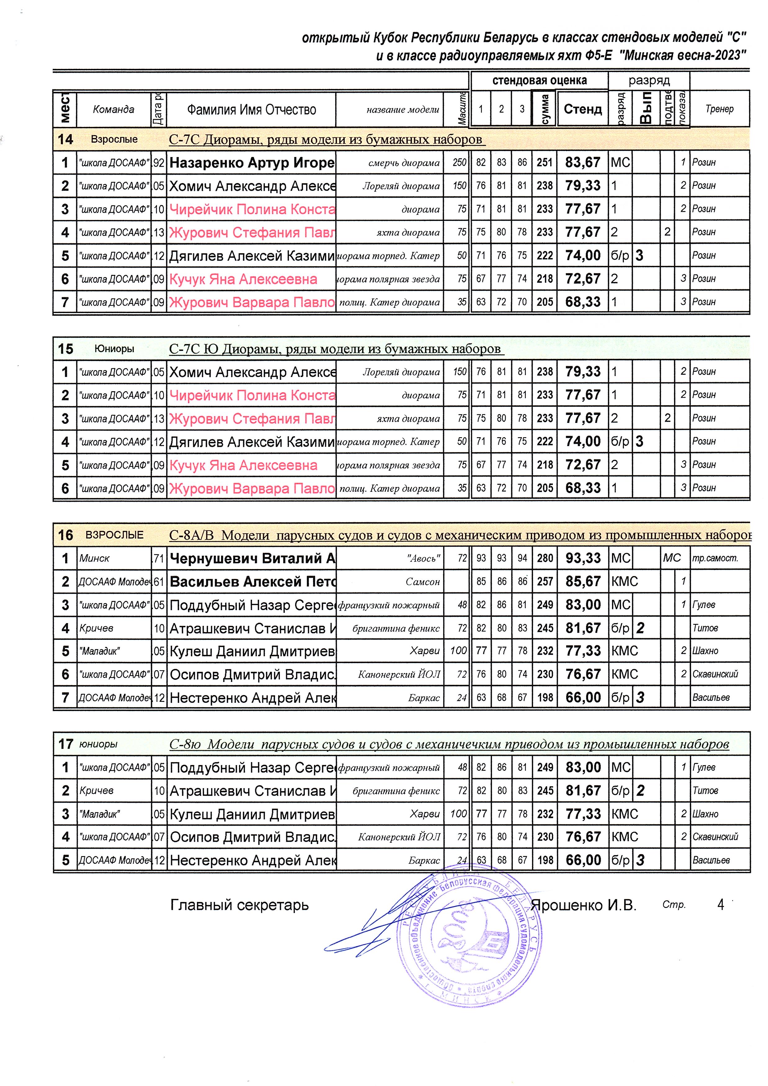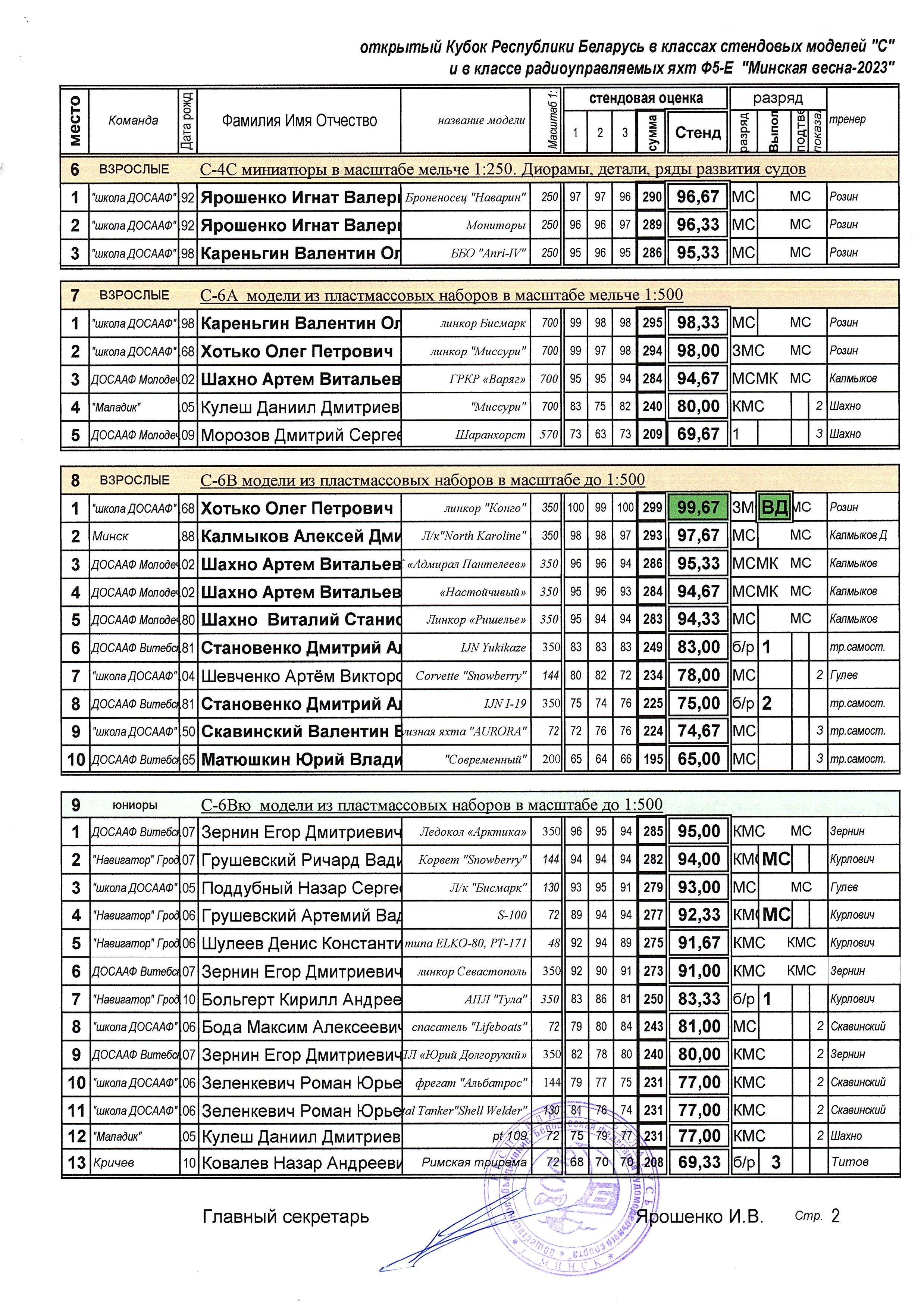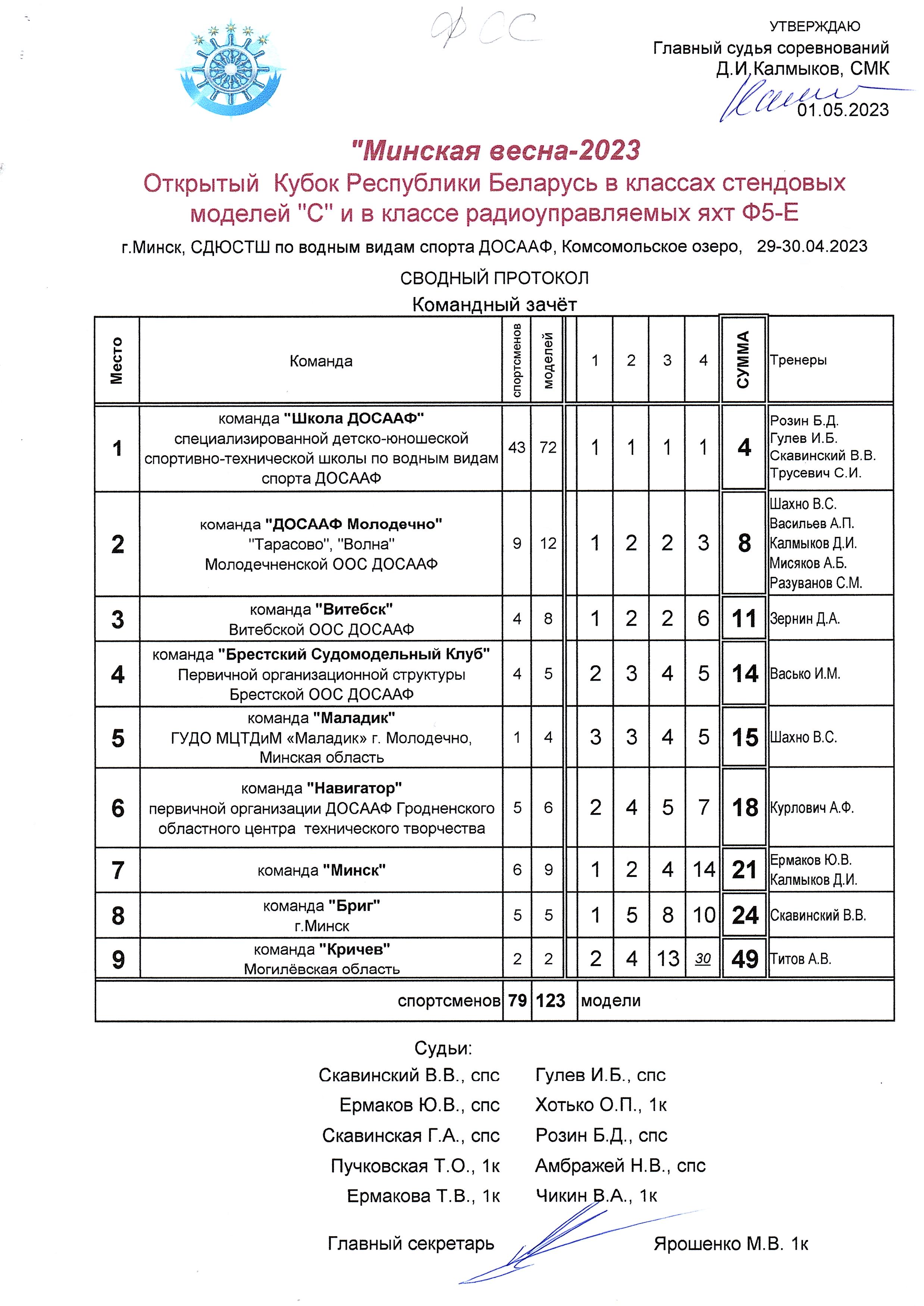 ♦ Открытый Кубок Республики Беларусь "Минская весна - 2023" в классах стендовых моделей "С" и в классе радиоуправляемых яхт "F5-E" (г.Минск, 29-30.04.2023). Положение о соревнованиях.