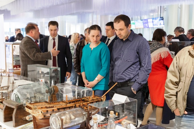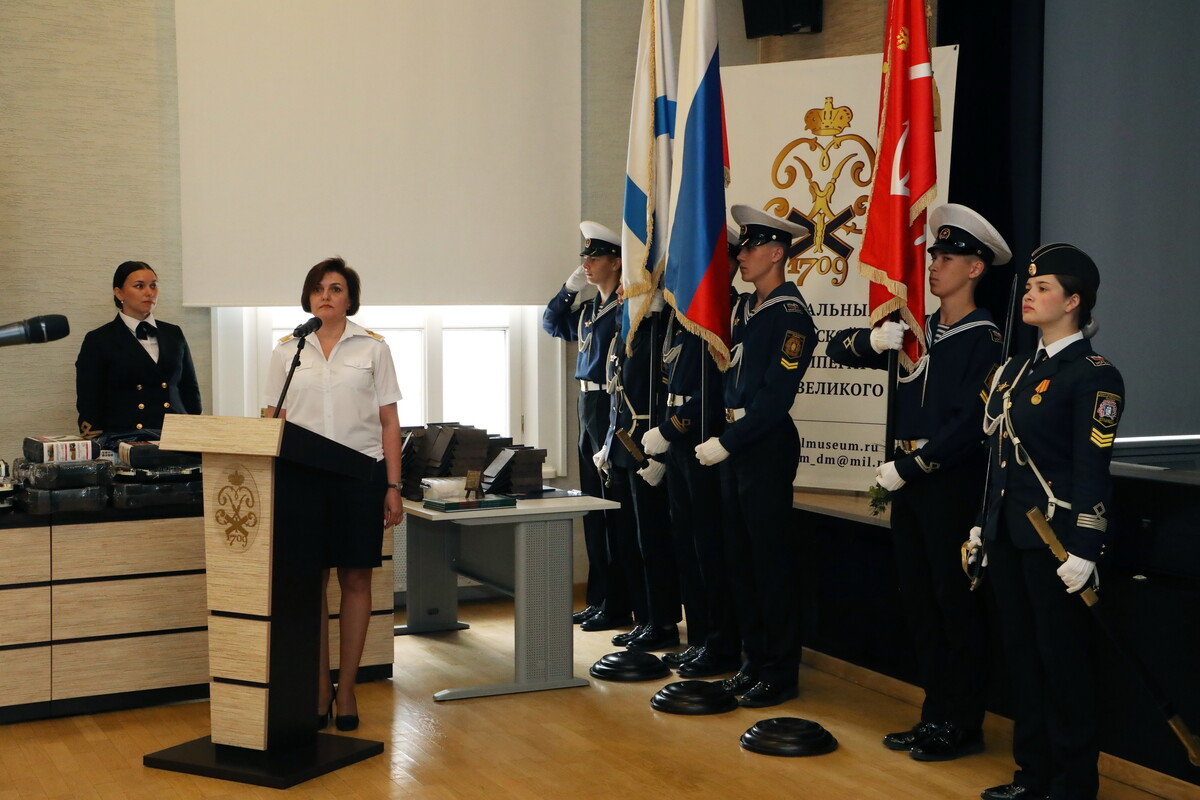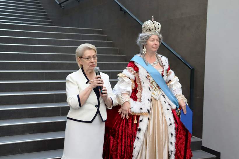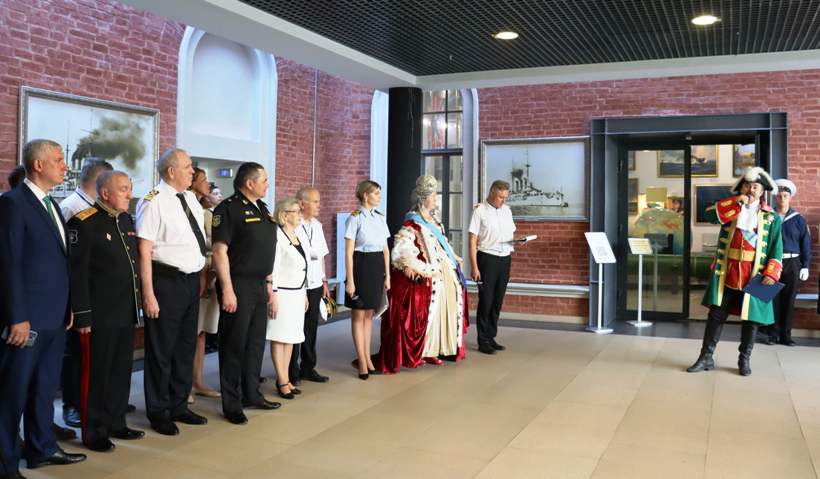 Затем участники и почетные гости совершили экскурсию по музею, где встретили Екатерину Вторую, рассказавшую про победы великого флота Российского. Почтил своим присутствием конкурс и сам император Пётр Алексеевич. Замечательные концертные номера подготовил для церемонии открытия колледж “Звёздный”.