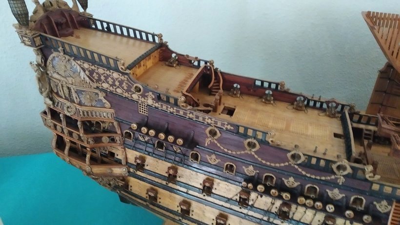Отдельно стоит остановиться на классе С-3В (разрезы и адмиралтейские модели), в котором были представлены сразу 6 (!) моделей корпусов исключительной сложности, трудоемкости и достаточно габаритных. Эти работы стали настоящей “изюминкой” стендовой экспозиции, приковывая к себе восхищённые взгляды не только многочисленных зрителей, но и опытных мастеров-корабелов. Все шесть моделей заработали высокие оценки – максимальная разбежка между ними составила всего 2,33 балла. Лучшей была признана модель линейного корабля “Le Soleil Royal” конца XVII века, богато украшенная искусным резным декором. Автор работы – Сергей Зенкин (Россия). Буквально в спину лидеру “дышали” модели старинных фрегатов “La Renommee” Андрея Крачко и "HMS Najad" Виталия Махорского (Беларусь), отстав всего на 0,67 балла. Эти корабли выделялись чистотой и качеством работы, удачным подбором пород древесины. Заметим, что 5 моделей класса C-3B получили золотые медали Кубка. И заслуженно! Ведь такой материал, как дерево, в отличие от металла и пластика, не прощает ошибок. Подшпаклевать, подкрасить дефекты – это не о нём…