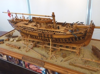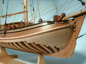 Корпусные или безрангоутные модели. Само название таких моделей полностью их характеризует. Это законченные модели с наружной обшивкой корпуса, всеми полагающимися элементами и деталями, украшениями и орнаментами, иногда с орудиями, иногда без, но без рангоута и такелажа. Искусно выполненные корпусные модели не проигрывают по привлекательности и зрелищности моделям, несущим мачты и паруса, а зачастую и превосходят их благодаря стилевой лаконичности и правильно расставленным эстетическим акцентам. Такие модели исполняются, как правило, в натуральном цвете дерева, с использованием его ценных и редких пород. Можно назвать несколько причин, по которым сегодняшние моделисты останавливают свой выбор на безрангоутных моделях. Во-первых, это отсутствие опыта и необходимых знаний для грамотной установки мачт и такелажа. Во-вторых, как бы это ни звучало банально, неудобство транспортировки и отсутствие достаточного места для размещения готовой модели с полным набором мачт и такелажных снастей. В-третьих, при ограниченных габаритах модель без рангоута можно сделать в более крупном масштабе, более детально прорабатывая все элементы корпуса. Корпусное исполнение позволяет подчеркнуть изысканность и сложность резного декора, сосредоточить внимание на отдельных его элементах, и, наконец, помочь зрителю прочувствовать композицию в ее единстве. В таком стиле, к слову, работает большинство мастеров из Ассоциации музейных моделистов Франции.